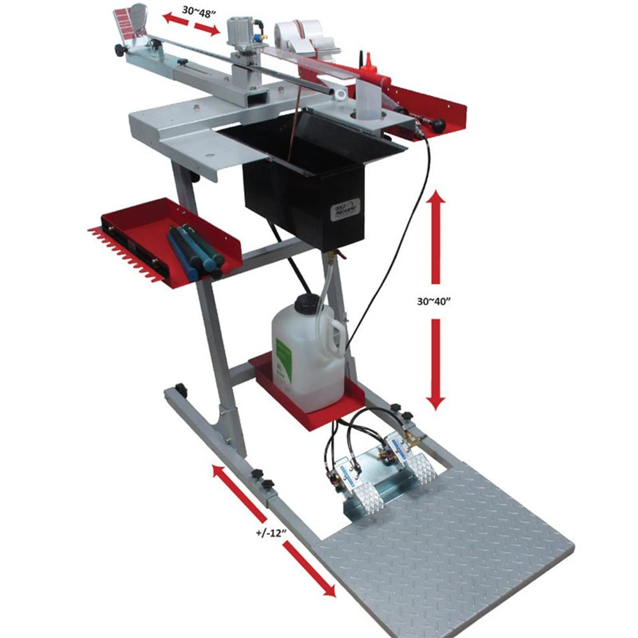 Self standing and fully adjustable; the frame has a comfortable form factor where all the components are logically positioned within arm’s reach for either right handed or Left handed operation. The broad work top with the repositionable side trays and integrated club rack help minimize clutter and improve efficiency.