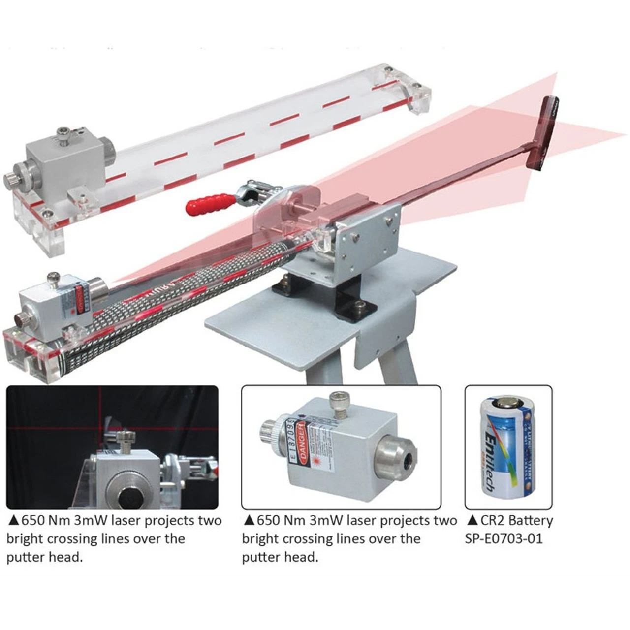 - Laser slides to align putter top line