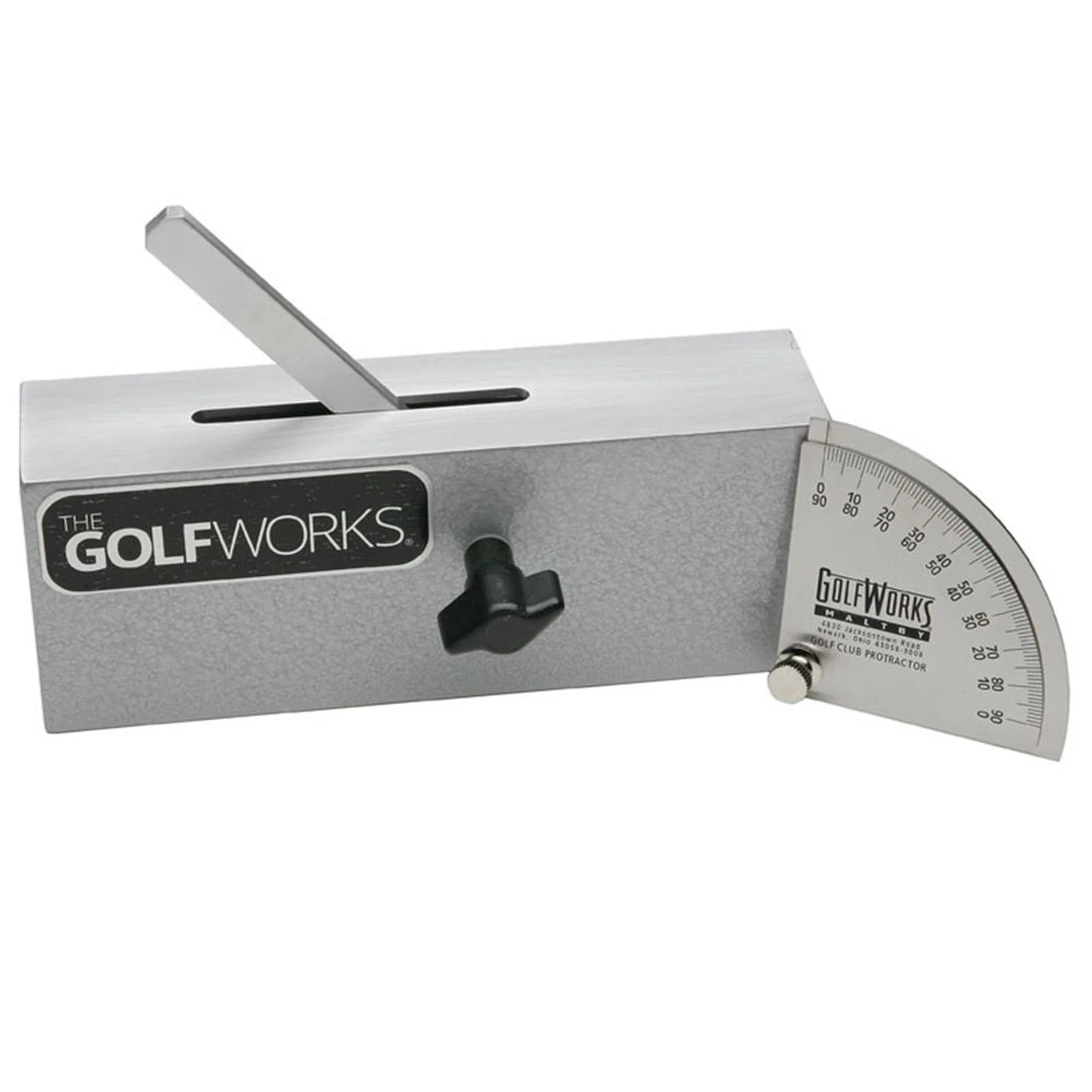 The Economy Bounce Gauge is a great tool for measuring the bounce angle of any iron quickly and accurately. There is no clamping down of the head required. Simply place the iron head face down on the gauge block, place the adjustable sole bar to the center point on the sole and your set up is done. Using the GWPRO Golf Club Protractor (included as a kit, or sold separately), you can accurately calculate the bounce angle. Can also be used to measure the loft of putter heads or oversize drivers.