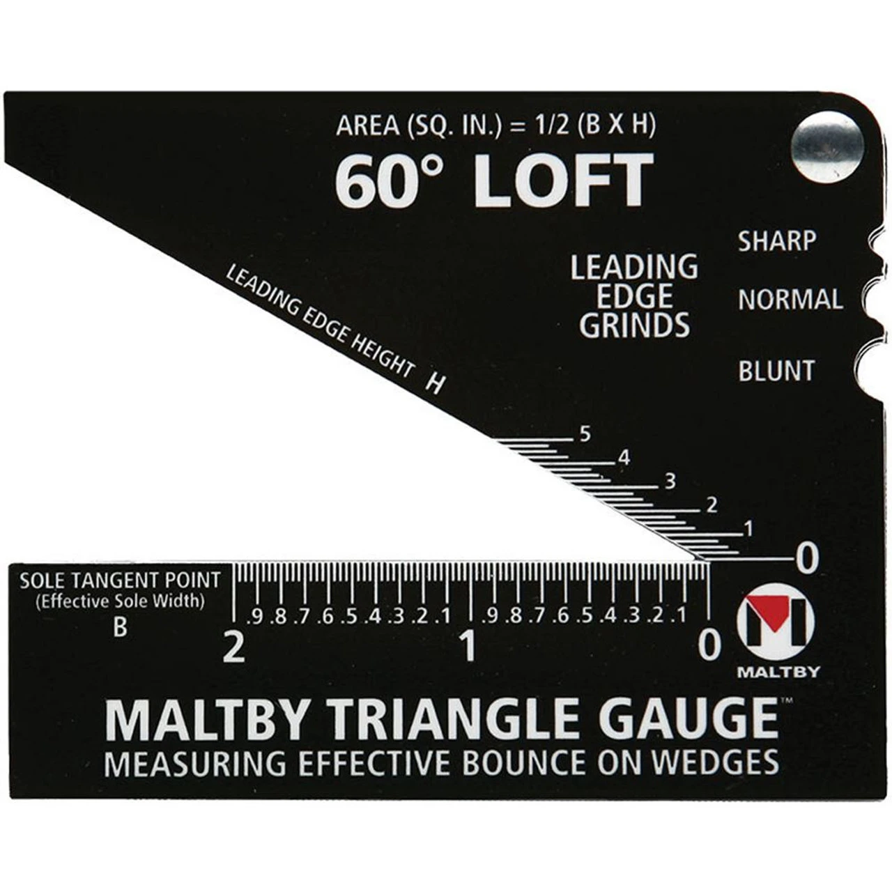 Selecting the proper wedge for a particular type of player by the measured bounce angle simply does not work. The bounce angles listed on a wedge do not account for sole width, sole radius, leading edge height or leading edge grind. All of these design characteristics influence the effect bounce of a wedge. The Maltby Triangle Gauges now offer the club fitter a definitive way to measure and compare the “effective” bounce of any wedge. With this knowledge, the club fitter can easily select a wedge to perfectly fit the characteristics of any golfer. Manufactured from durable .030″ White Syrene. Also available, a 1 hour information packed DVD; Learn All About Wedges.Set includes: 54°, 55°, 56°, 57°, 58° and 60° Triangle Gauges.